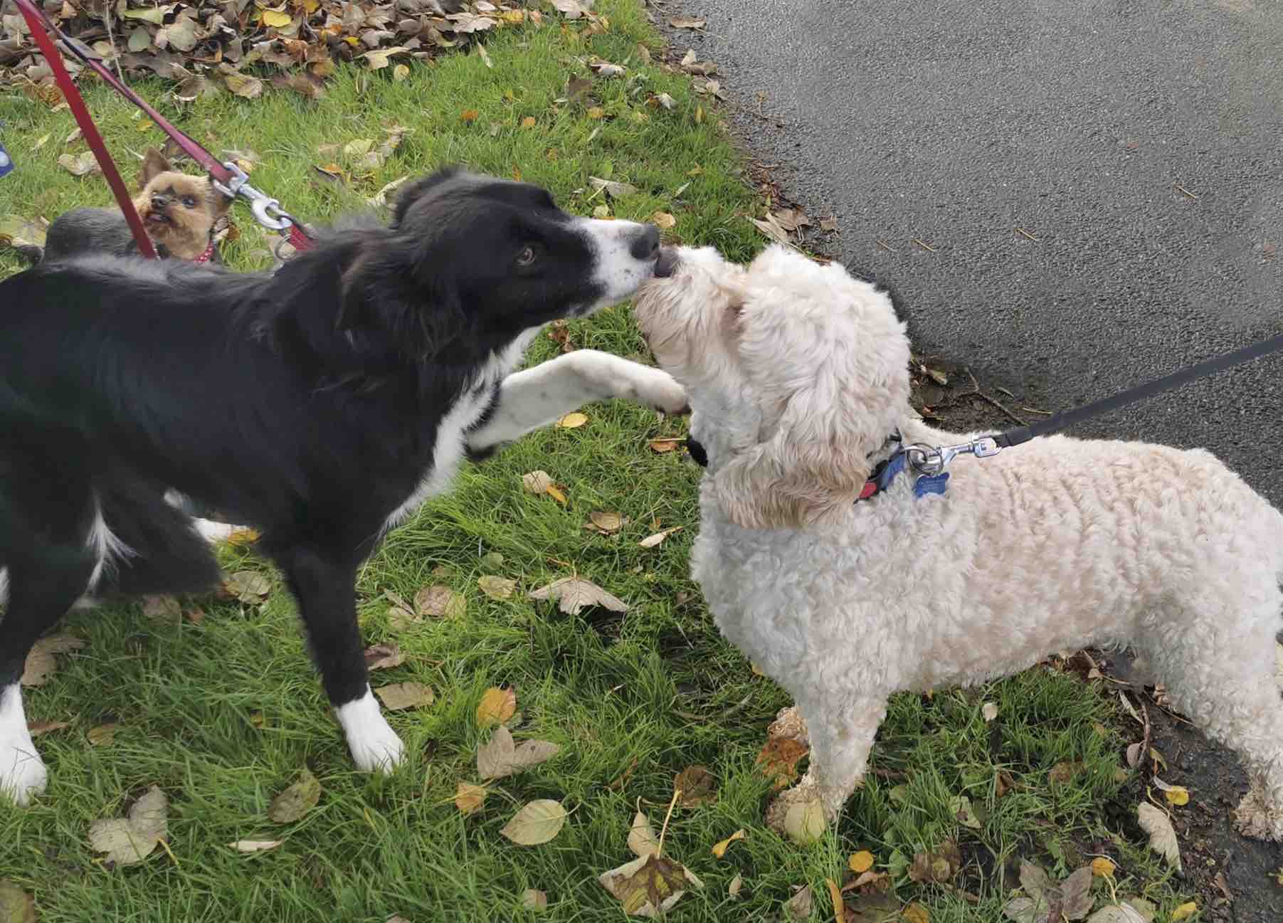 “Puppy Love – Let’s Be Friends” depicts two new friends meeting on their daily walk.